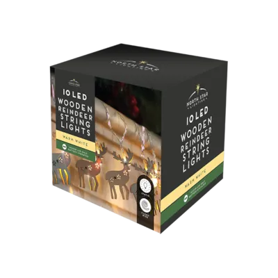• 10 warm white LED lights with wooden reindeer cut-outs