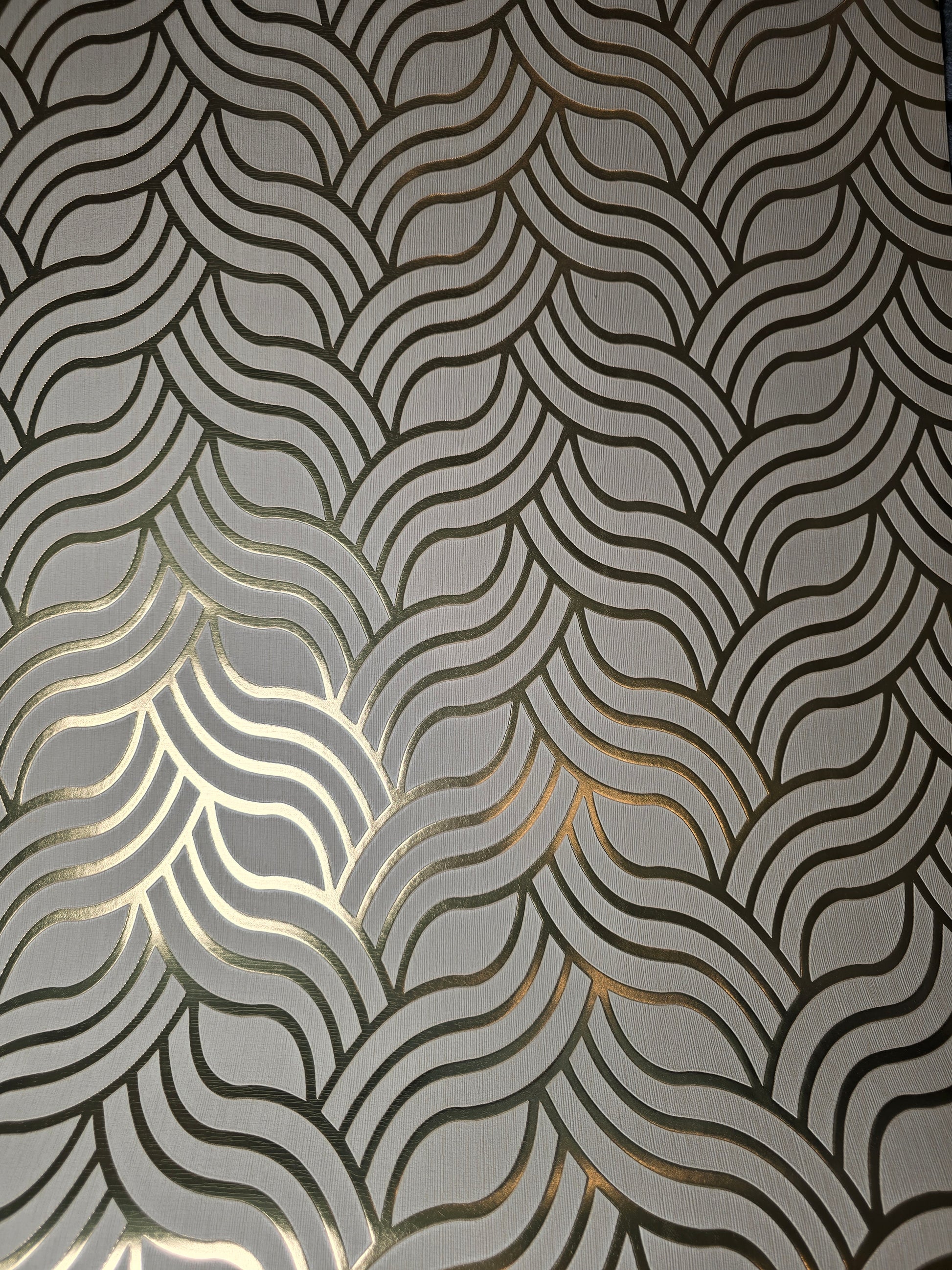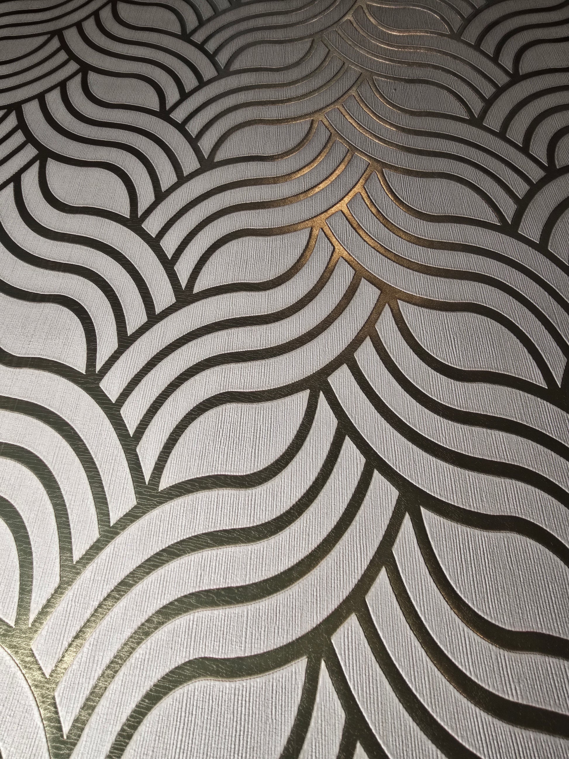 The embossed vinyl finish gives a high-end, tactile feel, making it perfect for feature walls, lounges, dining rooms, bedrooms and stylish hallways. The metallic elements catch the light beautifully – creating a premium, boutique-hotel look without the boutique price.