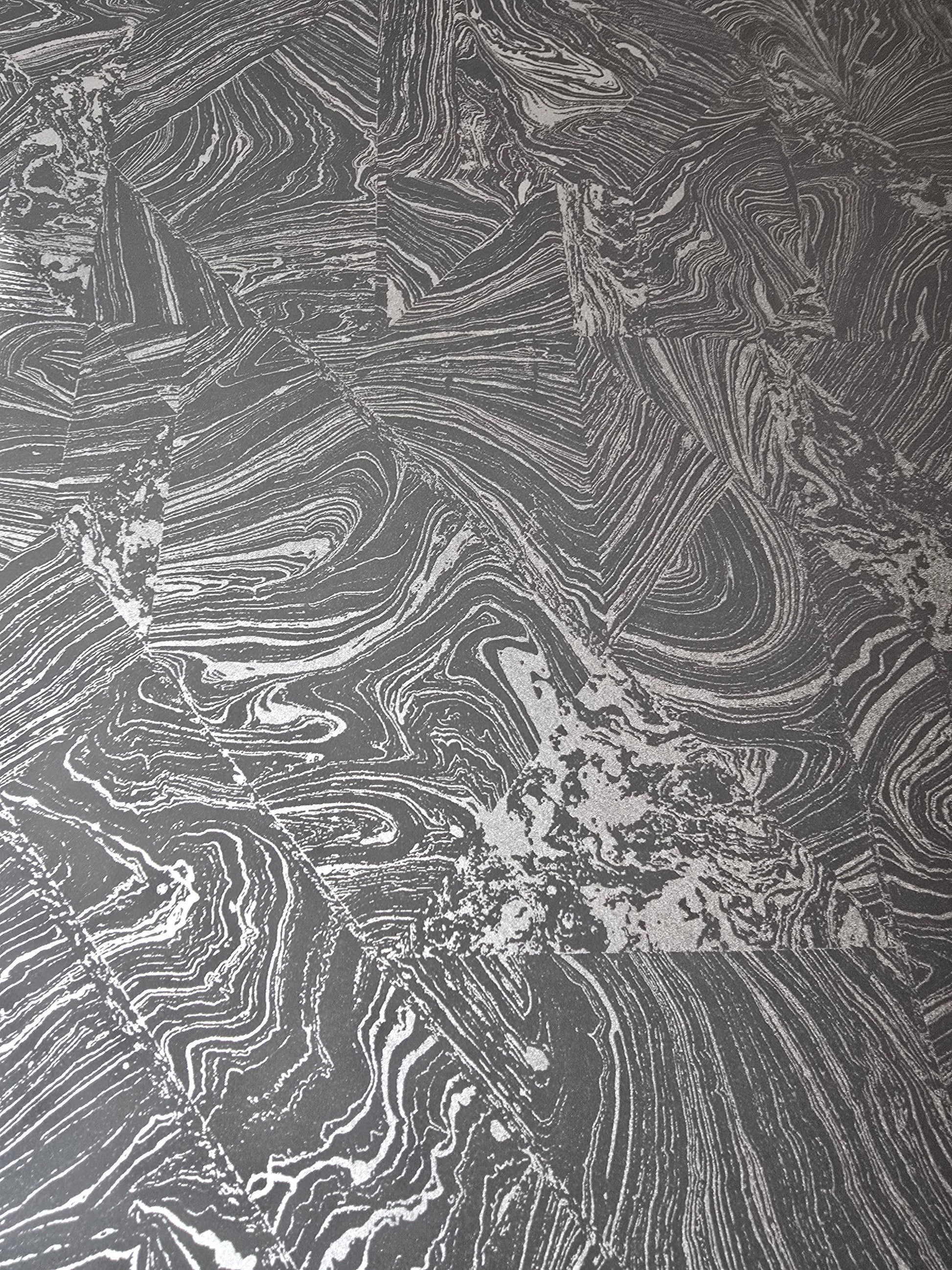 Bring a luxurious natural stone look to your home with this stunning Erisman 4 Earth Grey Marble Effect Wallpaper. Featuring swirling marble textures in shades of grey and silver, this modern geometric design adds depth and elegance to any room.