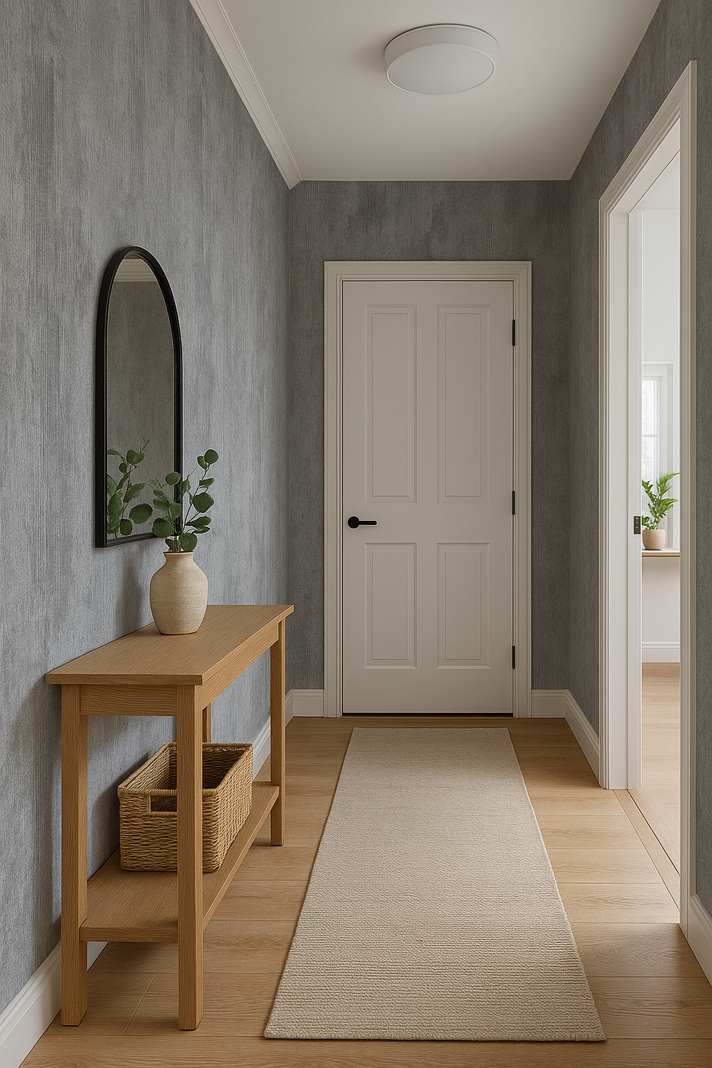 This versatile grey wallpaper complements both light and dark interiors, making it ideal for creating a contemporary and stylish home.