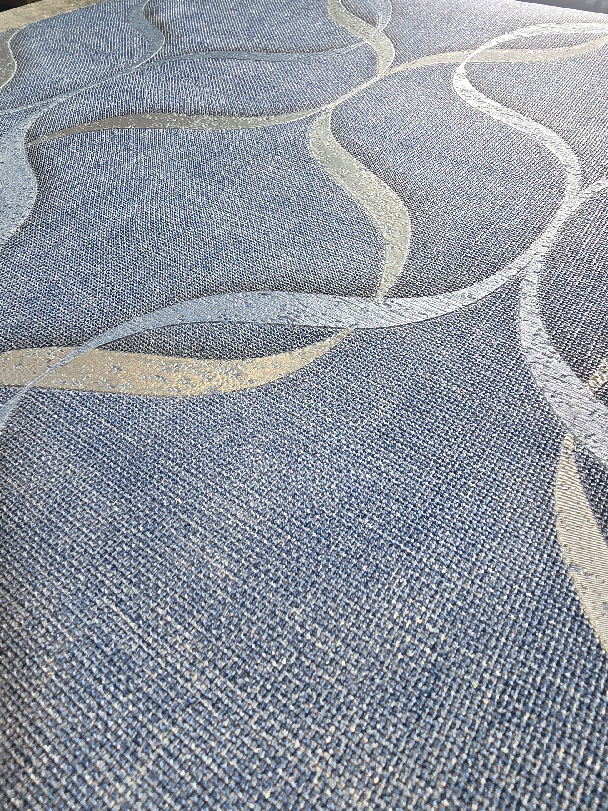 Luxury Vinyl Wallpaper – Blue & Silver Wave Design (Pattern M95628)