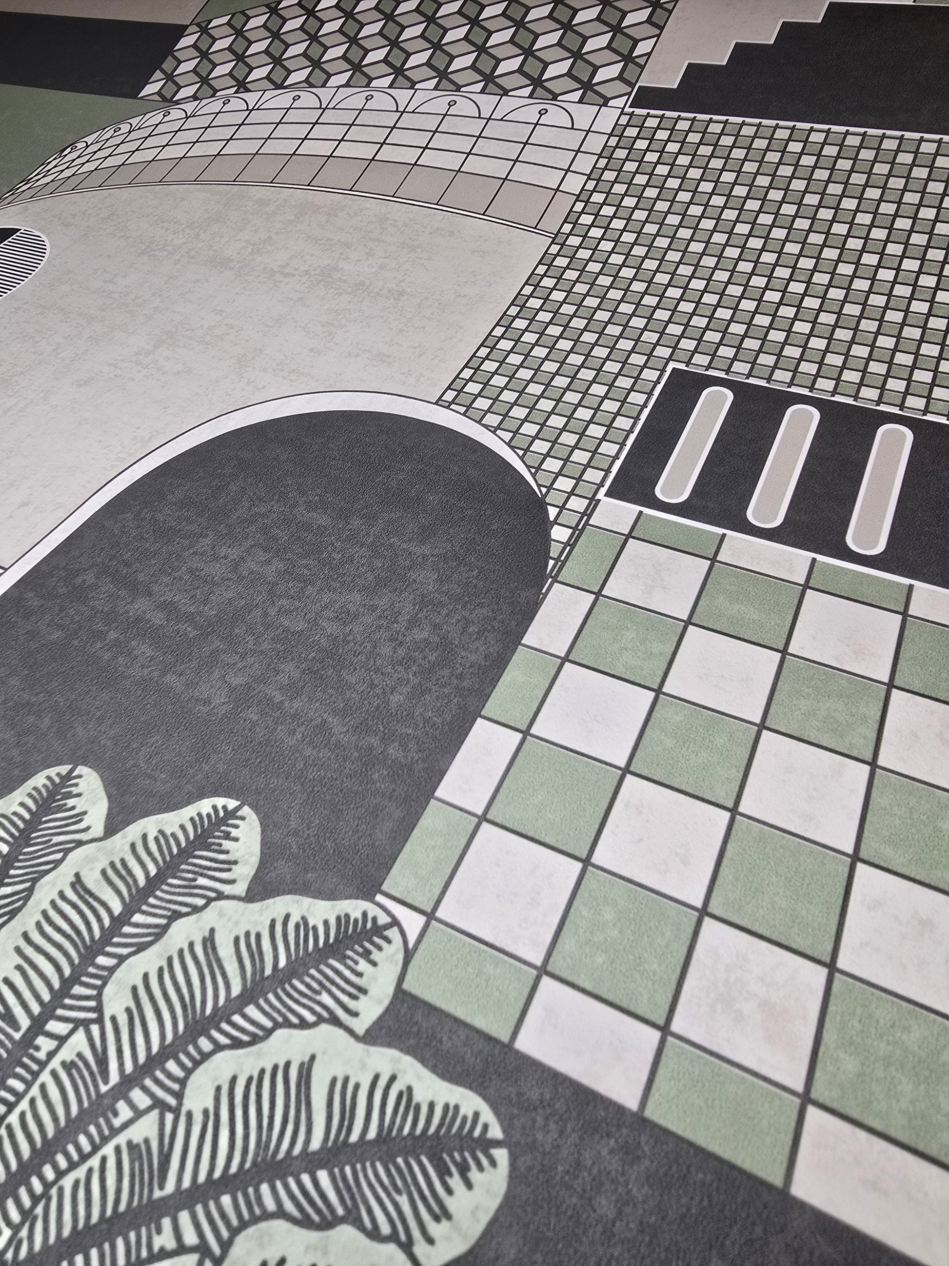 Create a bold, architectural statement with the stunning Medina Green (13100) wallpaper.