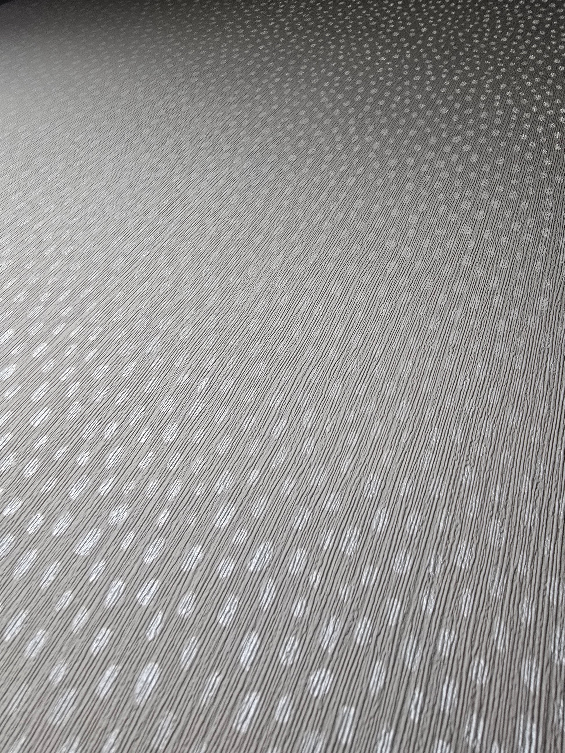 This beautiful premium vinyl wallpaper features a subtle textured dot pattern across a warm neutral cream background, giving a gentle shimmer that catches the light perfectly.