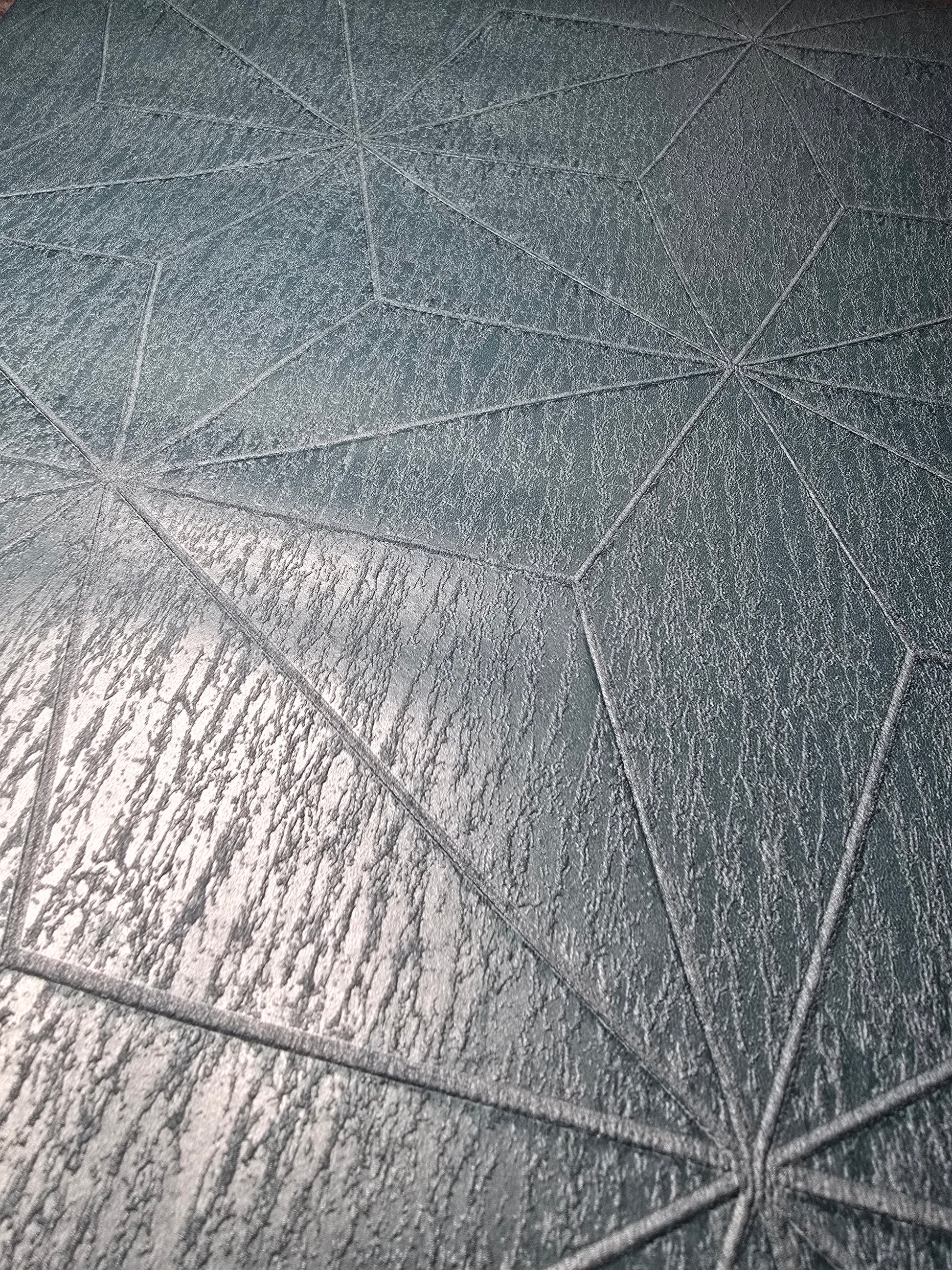 Textured Metallic Geo Effect Wallpaper Teal & Silver – FD25342