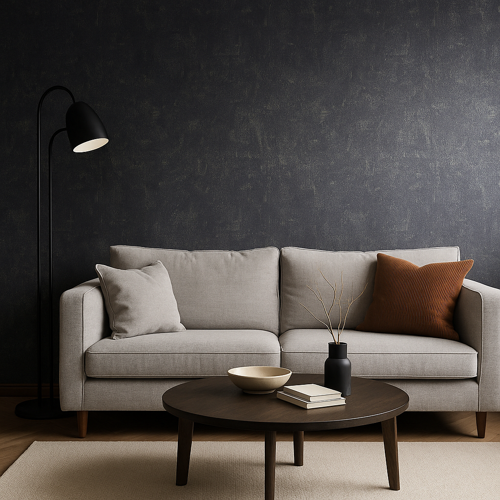 Add a touch of luxury to your home with this stunning heavyweight wallpaper. Featuring a rich charcoal backdrop with subtle gold highlights, it creates a glamorous textured look that elevates any space. Perfect for a modern, stylish feature wall.