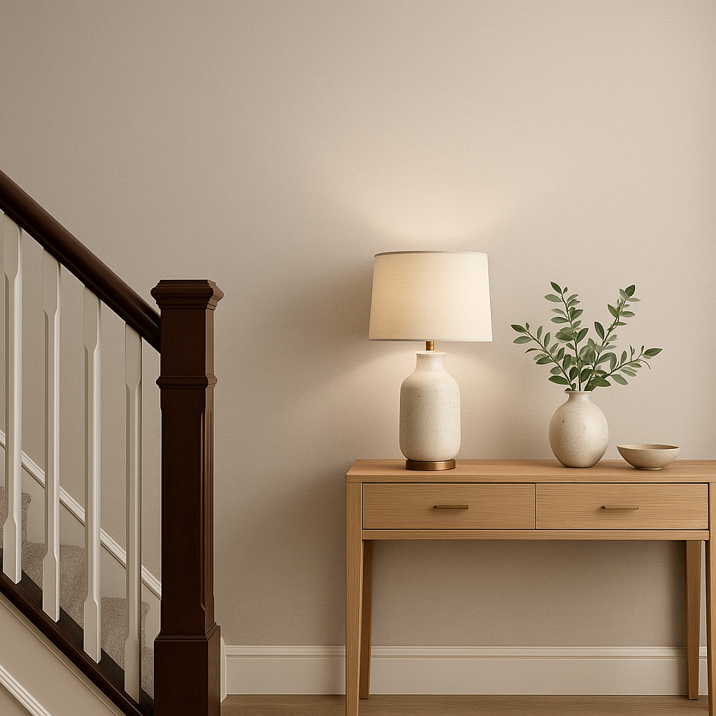 This versatile design features a soft blush tone with a subtle textured finish, perfect for adding warmth and sophistication to your home. Ideal for a minimalist full-room look or as a complementary backdrop to bolder feature walls.